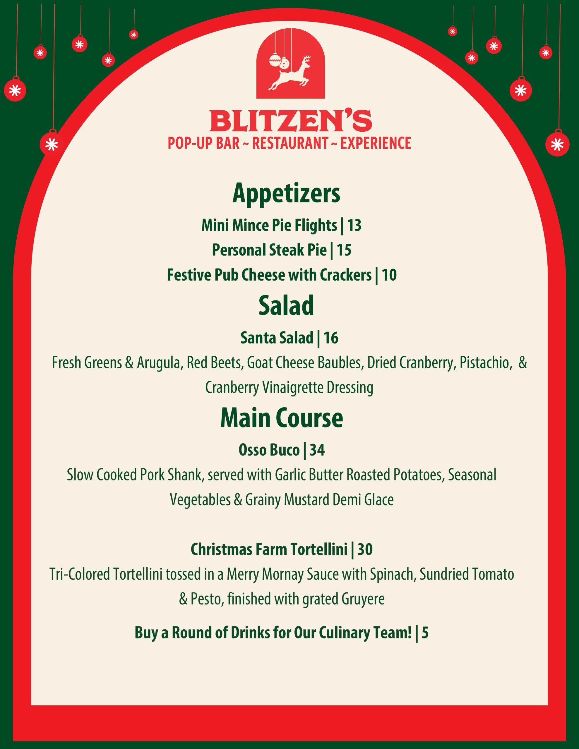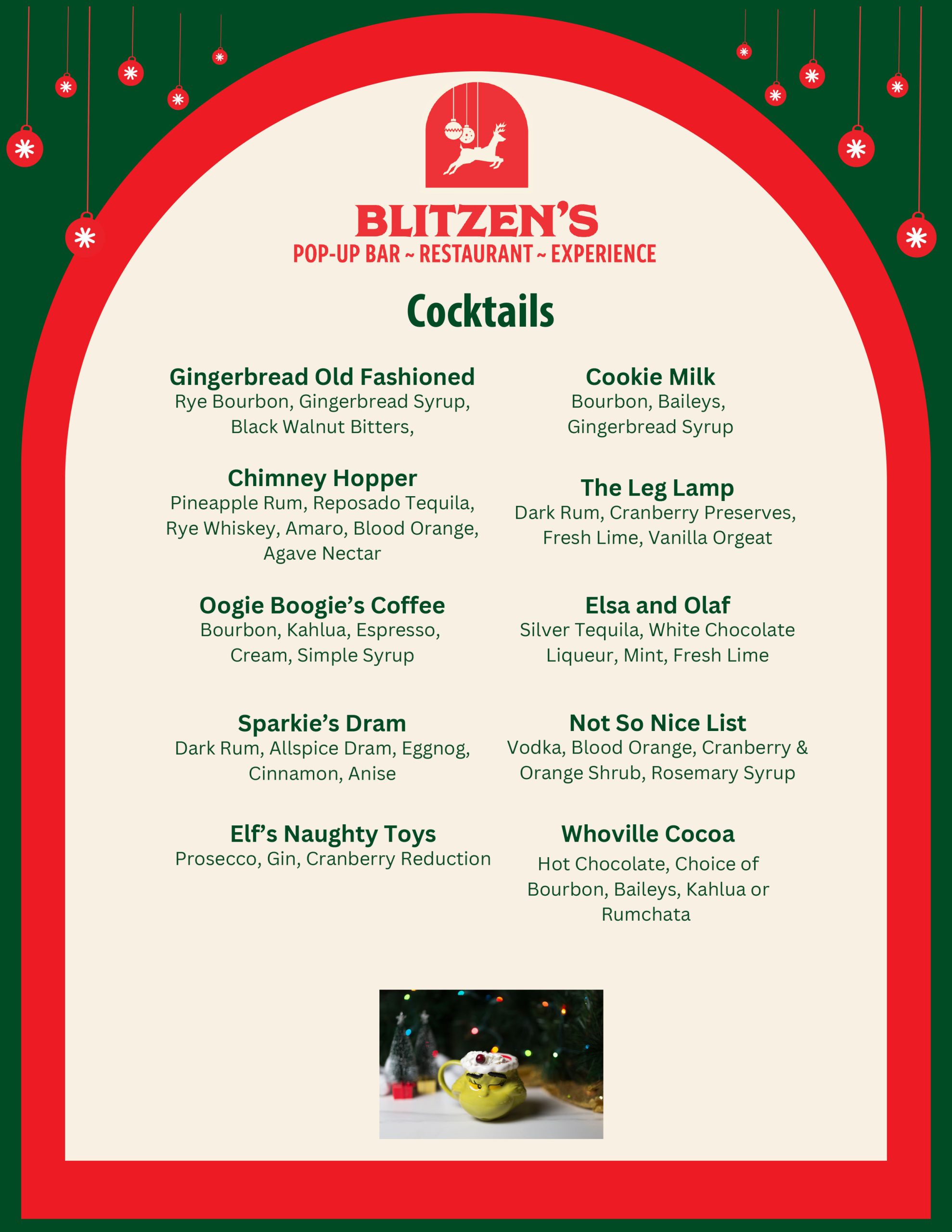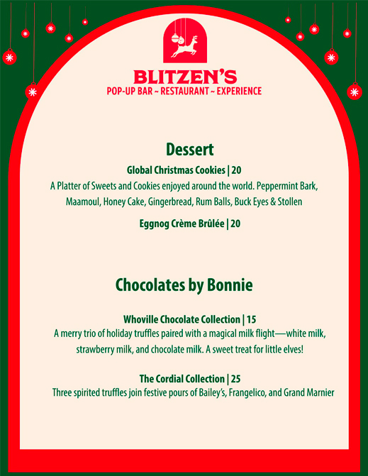 Celebrate the season at Blitzen’s Pop-Up Bar & Restaurant with festive décor, holiday treats, specialty cocktails, cozy s’mores, and unforgettable events for all.